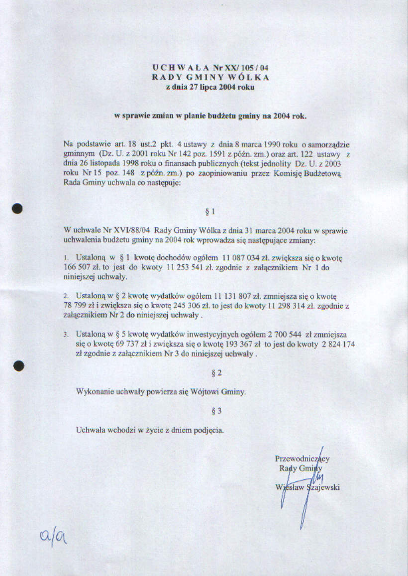 Uchwała w sprawie zmian w budżecie gminy na 2004 rok.